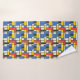An abstract, geometric, and brightly coloured print in blue, yellow, red, and black squares, rectangles and lines creates a bath towel set that you will love! Reminiscent of Piet Mondrian's style, this is a retro look with a modern update that's sure to please!