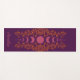 Bright and colourful double sided Moon Phase Celestial Stars Lotus Line Drawing Yoga Mat on a plum purple background with pink and orange moon and floral botanical and lotus flower details. Perfect for exercise, pilates, meditation, or your yoga practice. Makes an excellent gift for a yoga instructor. Magical celestial design. Easily personalise with your own text or name. Font colour and style can be changed in the design tool.