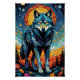 Colourful Mosaic Illustration of Majestic Wolf Poster