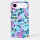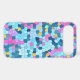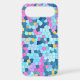 Bright and fun custom iPhone 4/4S case featuring a modern mosaic pattern on teal blue, hot pink and yellow.