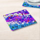 This stunning set of coasters presents a gorgeous mosaic tile pattern in shades of purple, pink, blue, turquoise and white.
