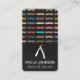 Colourful Moustaches Pattern Leather Pattern Business Card. This trendy shears icon design is the best for salon stylist, beauty, and hair care professionals.
