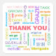 A fun colourful Thank You sticker featuring the word Thank You in different colours and 20 different languages.