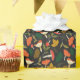 A full-colour mushroom and leaf pattern graces the black background in this vintage style.