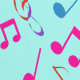 Colourful Musical Notes Design Wallpaper with customisable background colour.