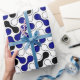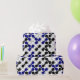 This colourful geometric wrapping paper features a metaball pattern in white, black, and navy blue. The colours are fully customisable!