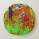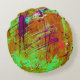 Colourful Neon Green Abstract Splatter Paint Round Cushion