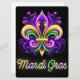 Colourful Neon Mardi Gras Fleur de lis Holiday Card