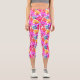 Colourful Neon Modern Flower Pattern Capri Leggings