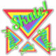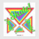 This is a set of brilliant neon coloured triangles with the word Skate! in a cool font. The colours are red yellow blue purple and green. There are four different sizes of vinyl decal stickers in this set and they will look gnarly on your skateboard deck or car windows or wherever you stick them!
