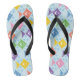 Underwater pattern flip flops with elements of a group of fish and air bubbles.