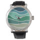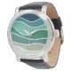 Abstract retro style illustration of colourful (blue, navy blue, grey, green, turquoise) ocean waves decoration on white background