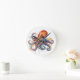 colourful octopus in watercolor big eyes round clock