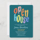 A colourful and fun open house party invitation. This fabulous invitation features bold modern typography on a colourful background. Easy to personalise with your own open house or birthday party celebration details.