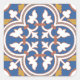 Elegant, blue, yellow and orange arabesque Moroccan pattern.