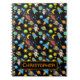 A colourful outer space spiral notepad with astronauts, rockets, aliens, stars, ufos and planets all on a black milky-way photographic background. Ideal as a birthday gift for your grandson or other family member or friend. Personalise by changing the name at the bottom.