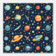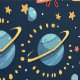A vibrant outer space-themed pattern showcasing colourful planets, stars, and celestial bodies against a deep blue sky. This whimsical design captures the wonder of the cosmos, making it perfect for space enthusiasts or anyone who loves fun, cosmic art.