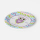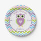 Cute purple owl bordered with colourful zigzag pattern Baby Shower Plate. You can remove text and "Baby Shower" image and add your personal information.