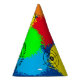 Colourful paintball Birthday party hats for kids. Personalised hats with cross hairs target and colourful paint splatter. Fun design for children.