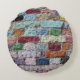 Colourful Painted Brick Wall Texture Round Cushion