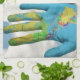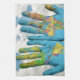 Colourful Painted World Map in Hands, Art Photo Tea Towel