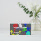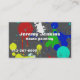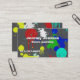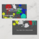 Splats and splatters of different colours of paint decorate this grey business card. The white text is customisable to say anything you want. Add more text fields on the front and back of this great card.