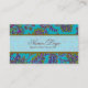 Beautiful floral pattern art deco style with green flowers on turquoise blue background. Business card template with fully customisable text/information. Design is available on other products.