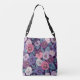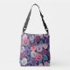 Colourful pansies on deep violet crossbody bag