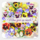 A beautiful bowl planted with pansies in so many lovely colours, with a shadow image in the background, and two pretty little butterflies complete the picture.
