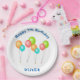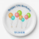 Cute Colourful Party Balloons Kid Birthday Paper Plates. Cute birthday party plates with four colourful balloons in red, green, blue and orange colours. Personalise the plates with your child`s name.