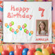 Colourful Party Balloons Kid Birthday Photo Backdrop Tapestry. Cute birthday party backdrop with four colourful balloons in red, green, blue and orange colours. Personalise the tapestry with your child`s name and photo.