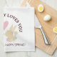 Colourful Pastel Easter Bunnies with Heart Tea Towel