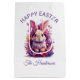 Introducing our colourful pastel Easter Bunny Rabbit design. Embrace the joy of the season with a playful bunny with a lavender tinge to his fur, surrounded by a burst of colours-lush purples, pinks, and hints of orange watercolor flowers. This is the perfect design for adding a festive and whimsical touch to your Easter. All text is editable. Customise from the product page or use the design tool to change font styles or colours. This Easter gift bag features a cute bunny and Happy Easter with your name. Edit, leave as is or remove entirely. Great for Easter gift giving!