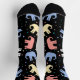 Red, yellow, blue and white pastel-coloured elephants on a pair of black socks. A clear sign that you're ready for a little change in your daily routine. To see some great grey. Even if they're not as colourful in real life, the majestic elephants are always a great sight. Hit the zoo. Or, if your budget allows, take a trip to see them in a different environment. Until then, show your favourite animal on your socks.