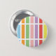 Geometric linear, rectangle, striped pattern of rainbow pastel hues of blue, orange, green, pink, purple, red and yellow.