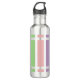Geometric linear, rectangle, striped pattern of rainbow pastel hues of blue, orange, green, pink, purple, red and yellow.