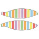 Geometric linear, rectangle, striped pattern of rainbow pastel hues of blue, orange, green, pink, purple, red and yellow.