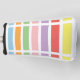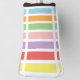 Geometric linear, rectangle, striped pattern of rainbow pastel hues of blue, orange, green, pink, purple, red and yellow.