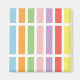 Geometric linear, rectangle, striped pattern of rainbow pastel hues of blue, orange, green, pink, purple, red and yellow.