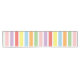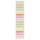 Geometric linear, rectangle, striped pattern of rainbow pastel hues of blue, orange, green, pink, purple, red and yellow.
