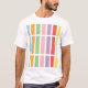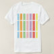 Geometric linear, rectangle, striped pattern of rainbow pastel hues of blue, orange, green, pink, purple, red and yellow.