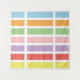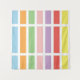 Geometric linear, rectangle, striped pattern of rainbow pastel hues of blue, orange, green, pink, purple, red and yellow.