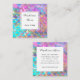 Colourful pastel rainbow unicorn gold mermaid scale iridescent square business card. Easily personalise this business card by adding your name, city and contact details. Click "customise further" to change the text colour and font style and size. This business card is perfect for a makeup artist, hairstylist, nail technician, or salon owner.