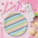 This angled stripe pattern in a colour palette of light pink, soft orange, spring green, mint, sky blue and navy make these paper plates a fun addition to your party decor and table scape. Great for a gender neutral baby shower, kid birthday party, graduation celebration and more, this patten brings a sense of geometric whimsy to any event.