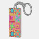 Original quilt art combines favourite quilt blocks plus unique blocks to form a quilt design with vibrant and dynamic colours. Show your love of quilting with these designs on favourite products like this keychain. Colours include red, orange, yellow, turquoise, pink and green. Fully customisable. Quilt art is from fabric and quilt designer Phyllis Dobbs and is in a fabric collection from Quilting Treasures. More products for businesses with this quilt art are available in Phyllis' Zazzle BusinessWithFlair store.