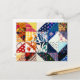 A colourful patchwork quilt postcard.