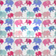 Pretty fabric material with retro patchwork elephants. Pretty pink and blue elephants design on fabric that would look great in nursery.