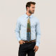 The fun and quirky design on this colourful tie with its unique design has been taken from a softly blended illustration of an original lake landscape painting, the design is worked in an abtract style and includes blended colours of blue, these playful colours are outlined in gold to seperate all the shapes and colours. The gold outlined lake reeds can be seen on this tie. These shapes, original image and colours give this unique tie will stand out wherever it's worn.