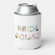 Festive can coolers featuring BRIDE SQUAD in colourful modern typography with mixed patterns. This will be perfect for bridal showers and bachelorette parties. Matching items are available.