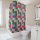 The colourful vintage look patchwork image on this cool shower curtain has a very traditional appearance, the fabric patchwork print is taken from a photograph of an original hand sewn patchwork design. The traditional patchwork has been photographed to show it looking natural and with a "pre-loved," or shabby chic appearance, you may even see a few pet hairs! and there will be uneven bits and stray threads and creases, this all makes up the natural look of a much loved traditional patchwork fabric. The realist look of the image on this original and unique shower curtain gives it a quirky vintage appearance.